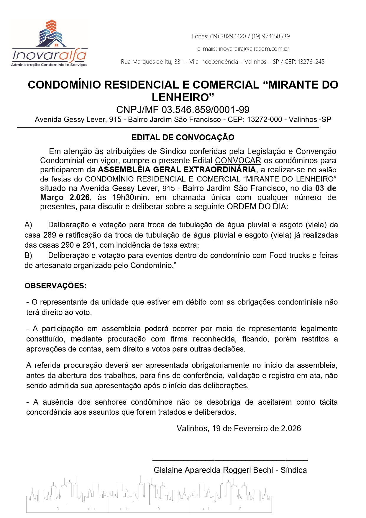 EDITAL DE CONVOCAÇÃO CONDOMÍNIO CHÁCARA FLORA