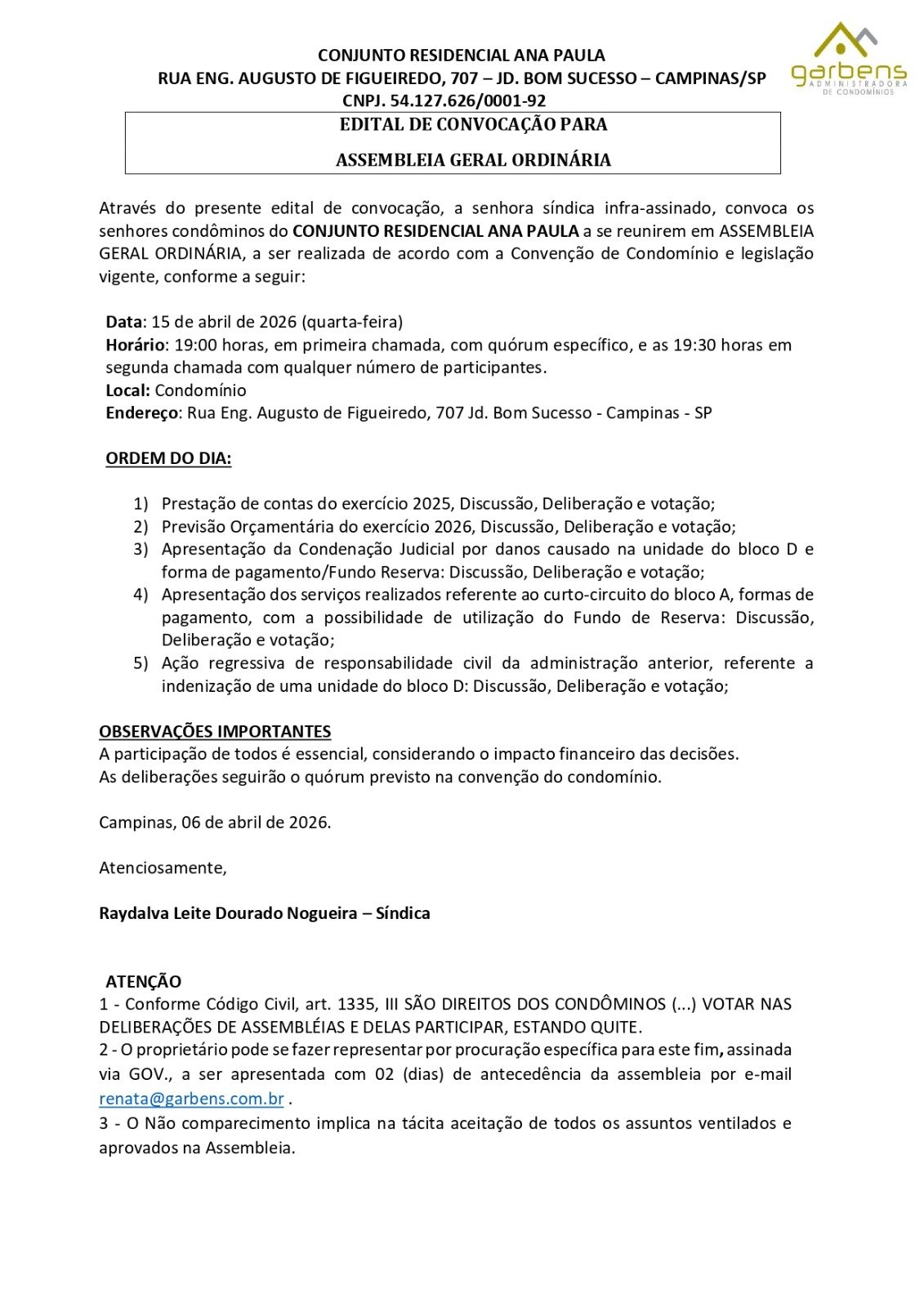 Compartilhe nosso conteúdo: Redes Socias SEGUIR SEGUIR Fale conosco Últimas Notícias CONJUNTO RESIDENCIAL ANA PAULA 7 de abril de 2026 …