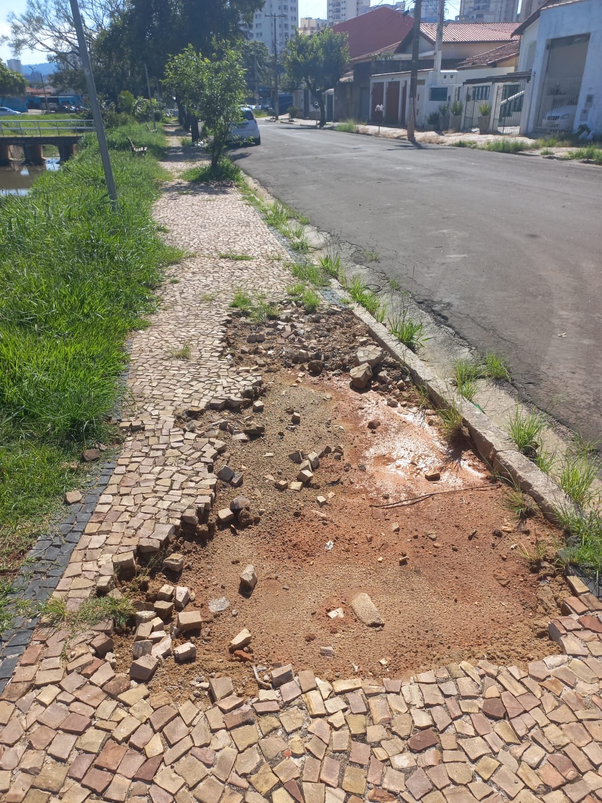 A Praça Eng. Fortunato José Borin, próximo ao restaurante W.O Brasa & Pizza, na Vila São José, está com as calçadas completamente destruídas e cheias de buracos, situação agravada com as chuvas no final do ano passado. Há pouco mais de seis anos, a área de lazer passou por uma revitalização, mas mesmo assim segue com esses problemas e outros como erosões na margem do córrego.