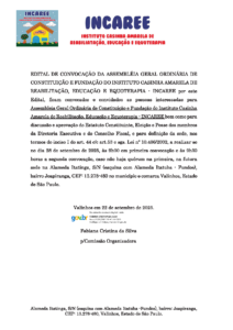 EDITAL DE CONVOCAÇÃO DA ASSEMBLÉIA GERAL ORDINÁRIA DE CONSTITUIÇÃO E FUNDAÇÃO DO INSTITUTO CASINHA AMARELA DE REABILITAÇÃO, EDUCAÇÃO E EQUOTERAPIA INCAREE